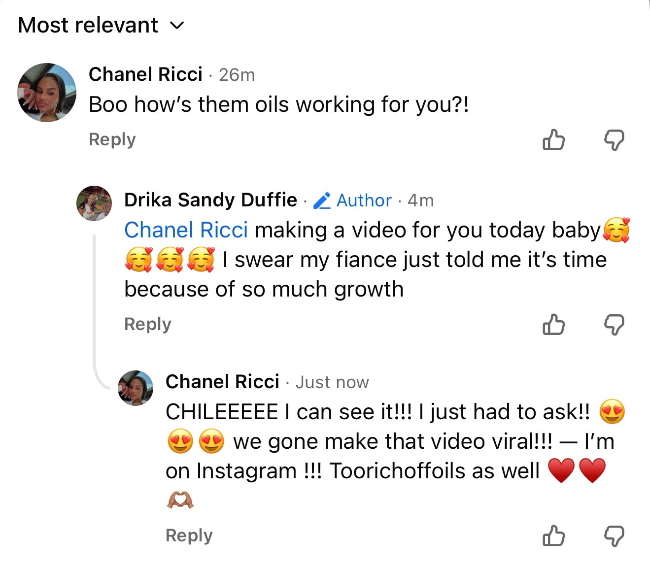 I started selling Hair first, Virgin and raw hair and it was beautiful! But down the line I started to realize that first, I am a creator and second what happens when the bundles come out? The confidence for me was different, i then thought not only me, but millions of women, men, and even children, can benefit from Hair Oils! — A feeling that we won’t have to take off!! I have been using hair oils for years! — So I started My Own Oil Collection, Fast forward to our now name, From Toorichoffhair too Toorichoffoils. I realized that I use Oils daily on my face and body as well, this feeling I need to Share! I need to formulate.. The rest is history. — Your Oils are formulated with love, respect, and care right here in the USA.